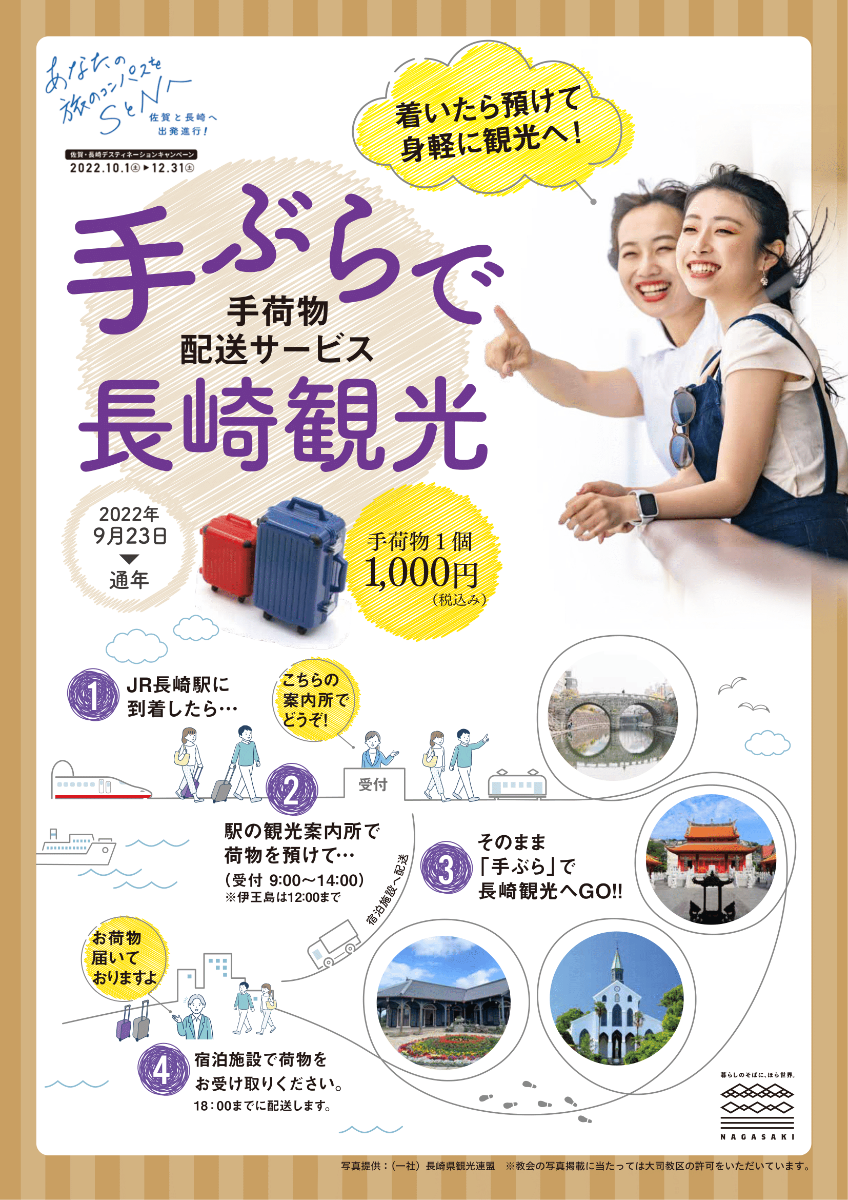JR長崎駅内の総合観光案内所にお荷物をお預けいただき、宿泊施設に配送を行うサービスです。